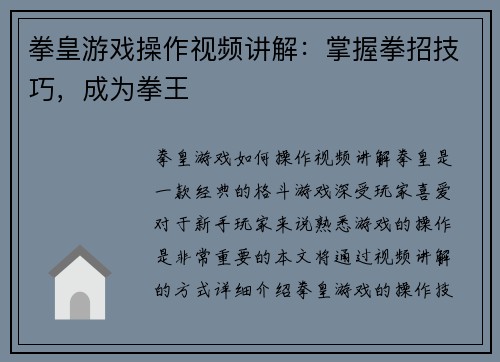 阅读拳皇97手柄如何爆气 介绍 拳皇97是一款经典的格斗游戏,玩家可以通过手柄来控制角色进行战斗。爆气是游戏中非常重要的技能,可以增加攻击力和连击的可能性。本文将详细介绍拳皇97手柄如何爆气。 手柄的基本...